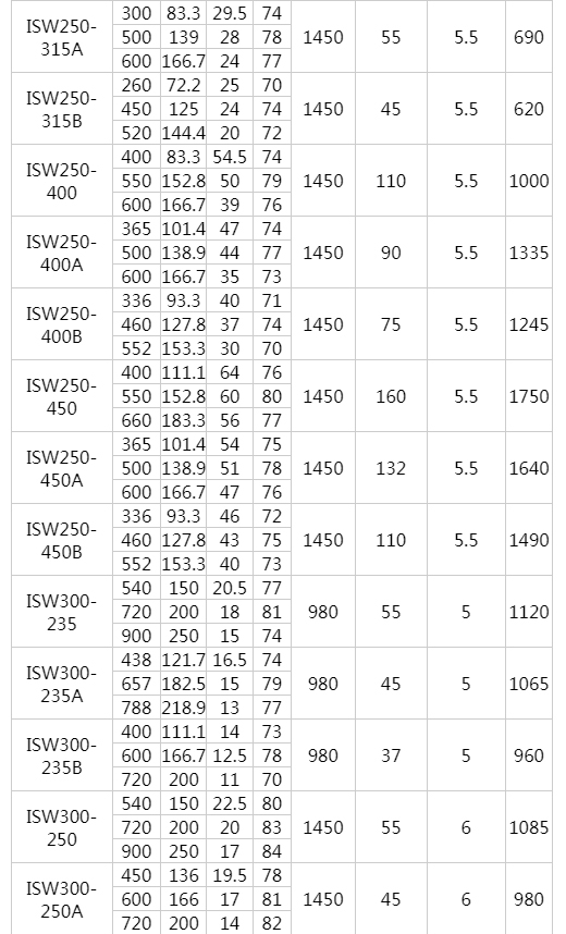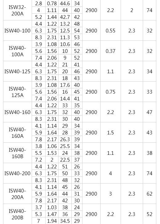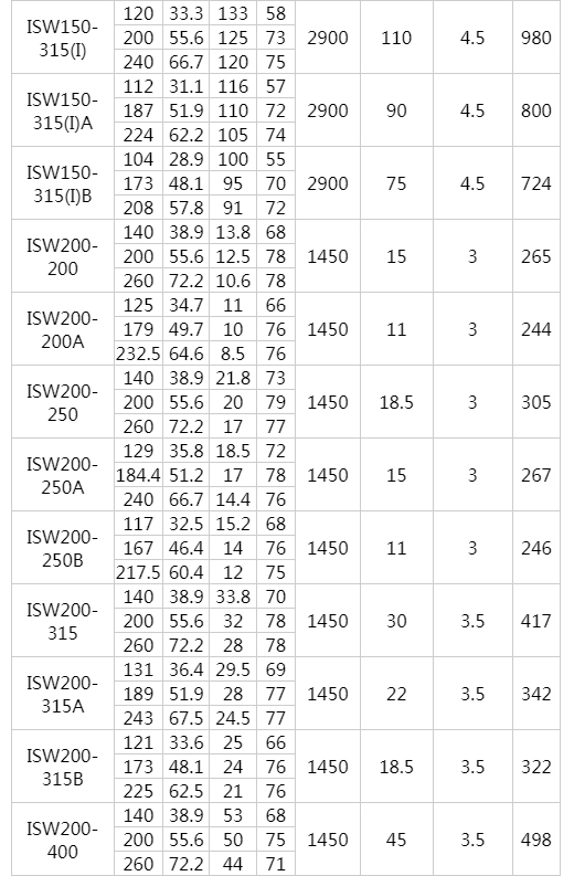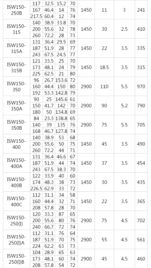 ISW型臥式離心泵工作條件: